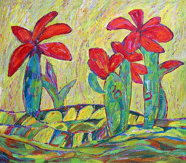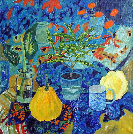 This is a mystery painting in a full scale. There's no dynamic and enotioness of human being in it. Time is staying in these canvasses. These pumpkins never will be over grown. And these lilies will never dry. May be there are not stories of People at all. Just stories of Things.