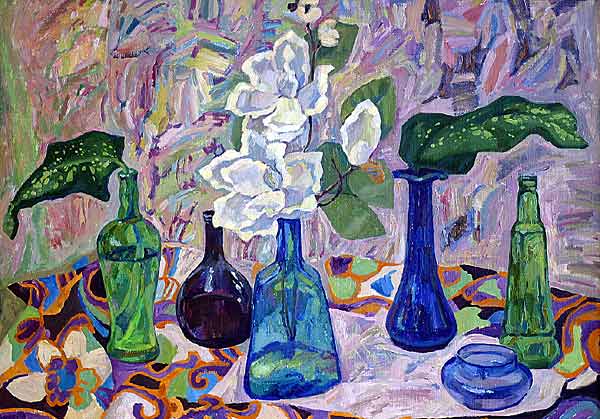 The favourite Tatiana's genre is decorative still life. She is fascinated of Beauty of simple things. Plain peppers and melons seem exotically and mysterious. She stresses the influence of eastern art and also painting of Mathis Bonnar.