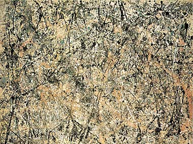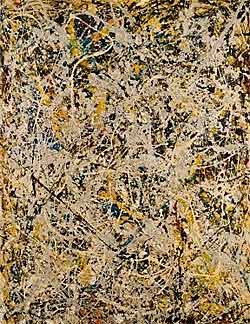 Jackson Pollock's art conveys the mindset of Abstract Expressionism. Pollock argued, “The painting has a life of its own. I try to let it come through”. Pollock reveals the life of the painting through “actions,” an energetic technique of dripping and pouring paint on a canvas that is placed directly on the floor. Pollock explained, “On the floor I am more at ease, I feel nearer, more a part of the painting… Since this way I can walk around in it… Work from the four sides and be literally ‘in' the painting...” |